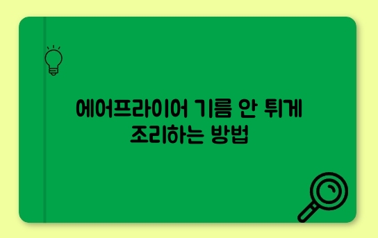 제목과 첫 문단에 에어프라이어, 본문 곳곳에 기름 안 튀게, 기름 튐 방지, 조리법, 마무리에 주방 청소를 배치하면 검색 친화도가 높아집니다니다. 동일 표현 반복을 피하면서 의미가 같은 유사어도 함께 사용하면 자연스럽고 풍부한 글이 됩니다니다.